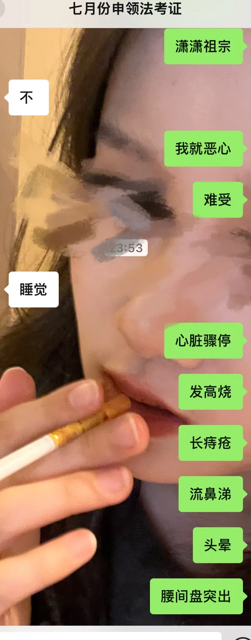 vcrunyue:↑痛腚思痛Exploration:↑睡前想打视频我就这样😣流鼻涕和其它几个能并列,也算是牛了大福了,话说长痔疮笑死我了……