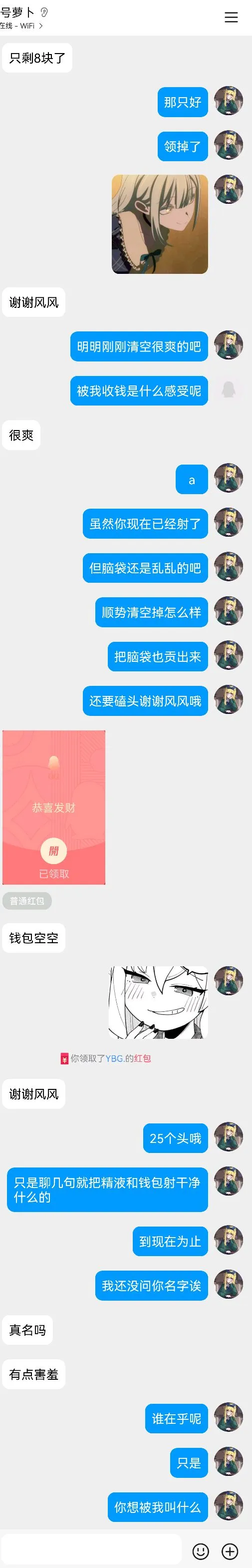 A:风风这几天不榨你零花钱但是你也不能和风风聊涩涩。